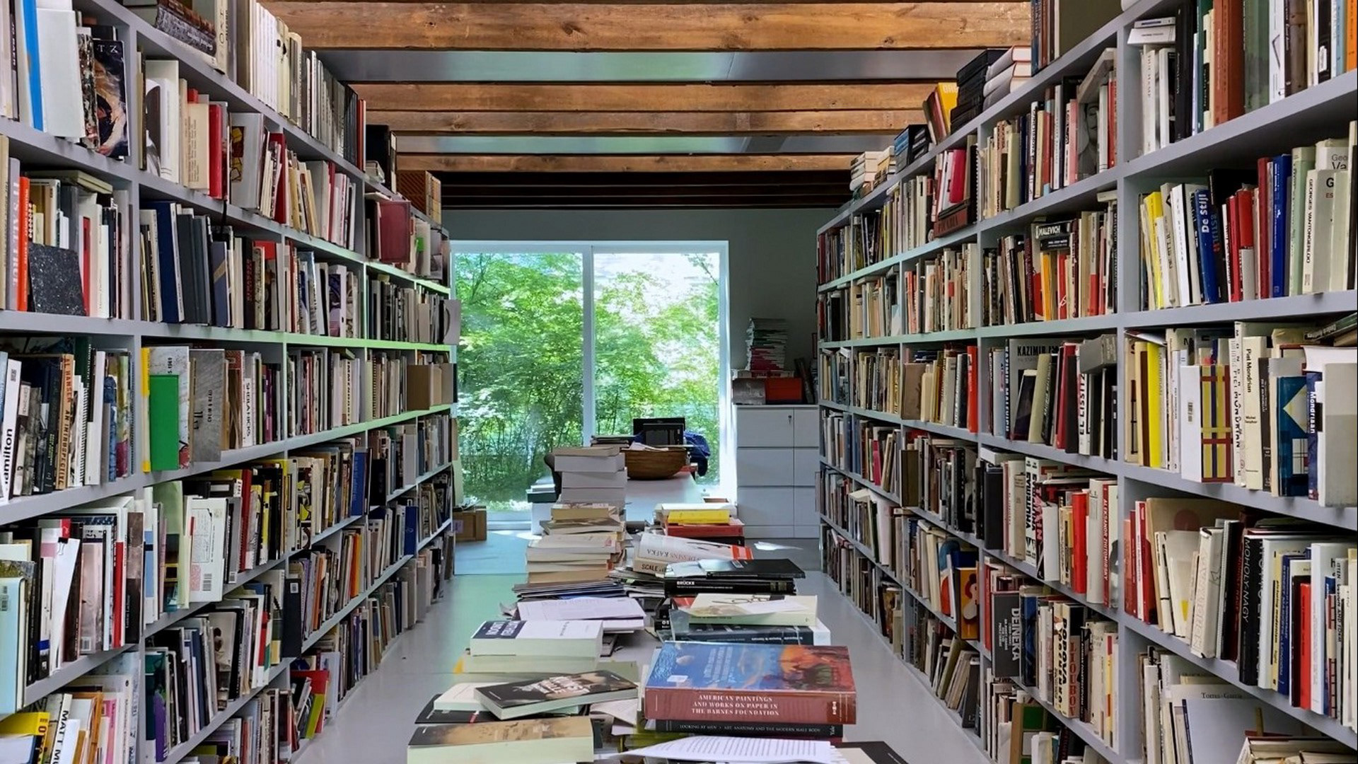 Descrição: registro poético da biblioteca do historiador da arte Yve-Alain Bois.