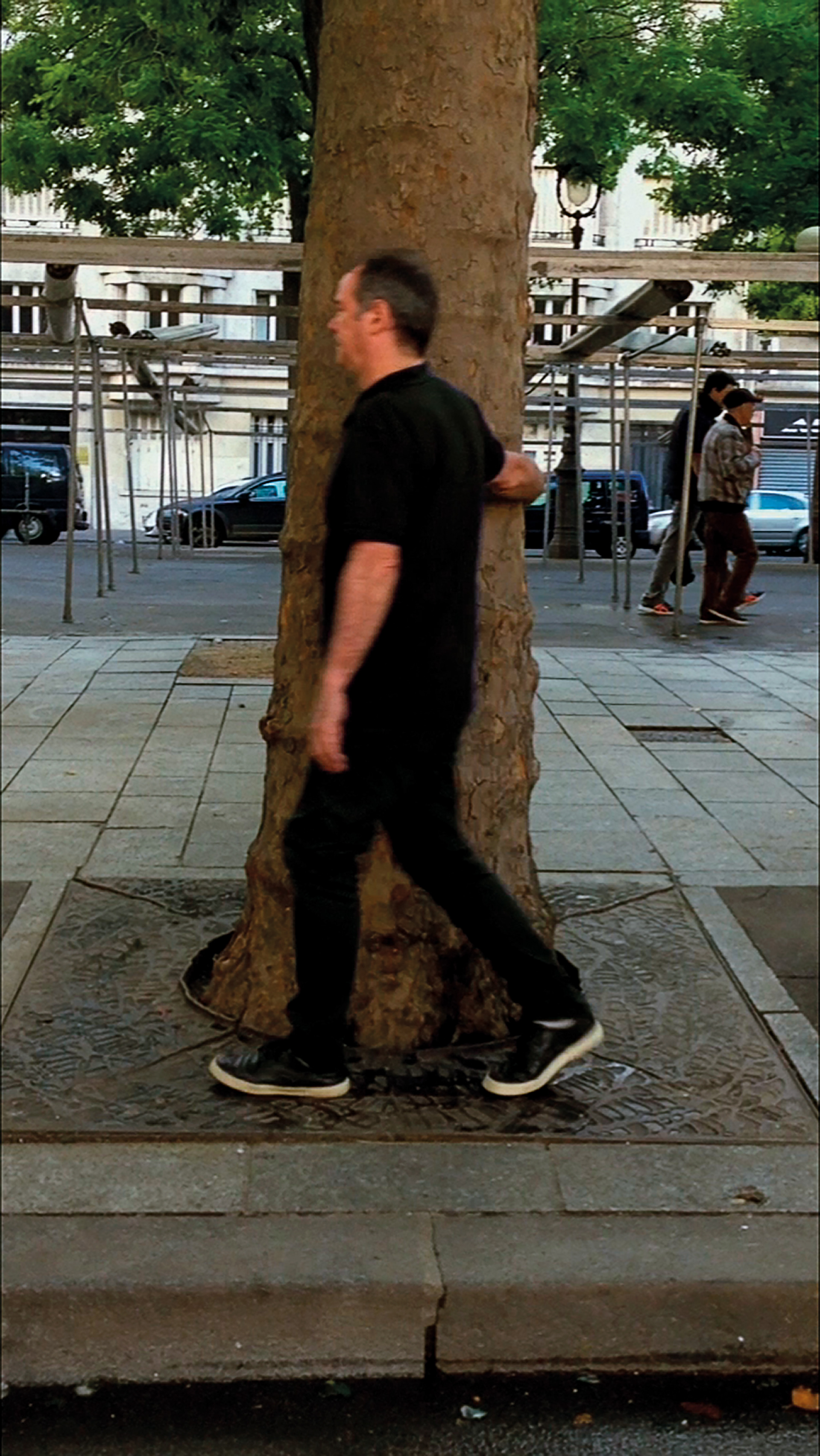 A música francesa “Aline” marca o aparecimento e o desaparecimento de um casal a girar em torno de uma árvore.
